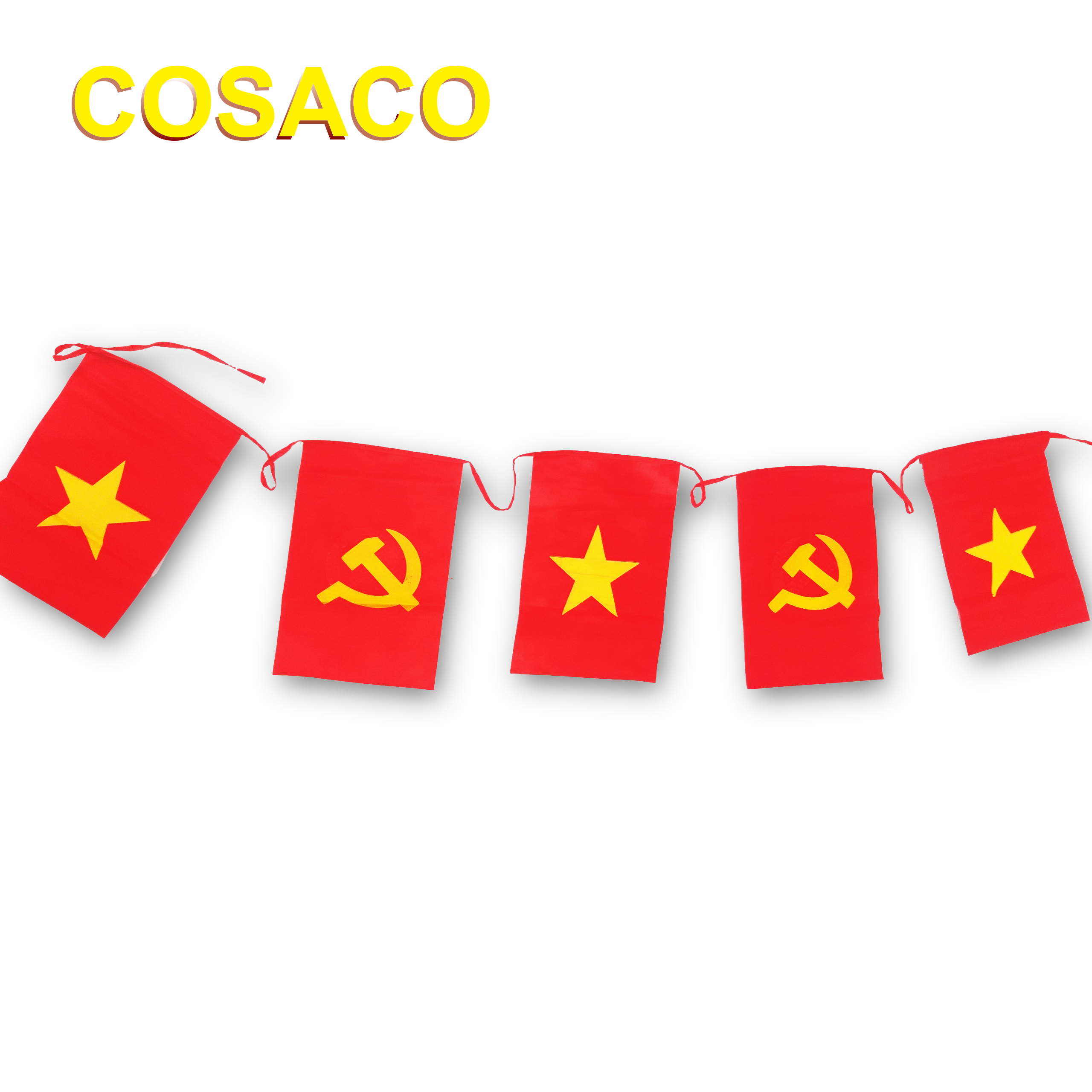 ⇒ Giá cờ dây Tổ quốc cạnh tranh nhất chỉ từ 9.000 – 13.000 đồng/mét do chúng tôi là công ty có xưởng may và xưởng in riêng.