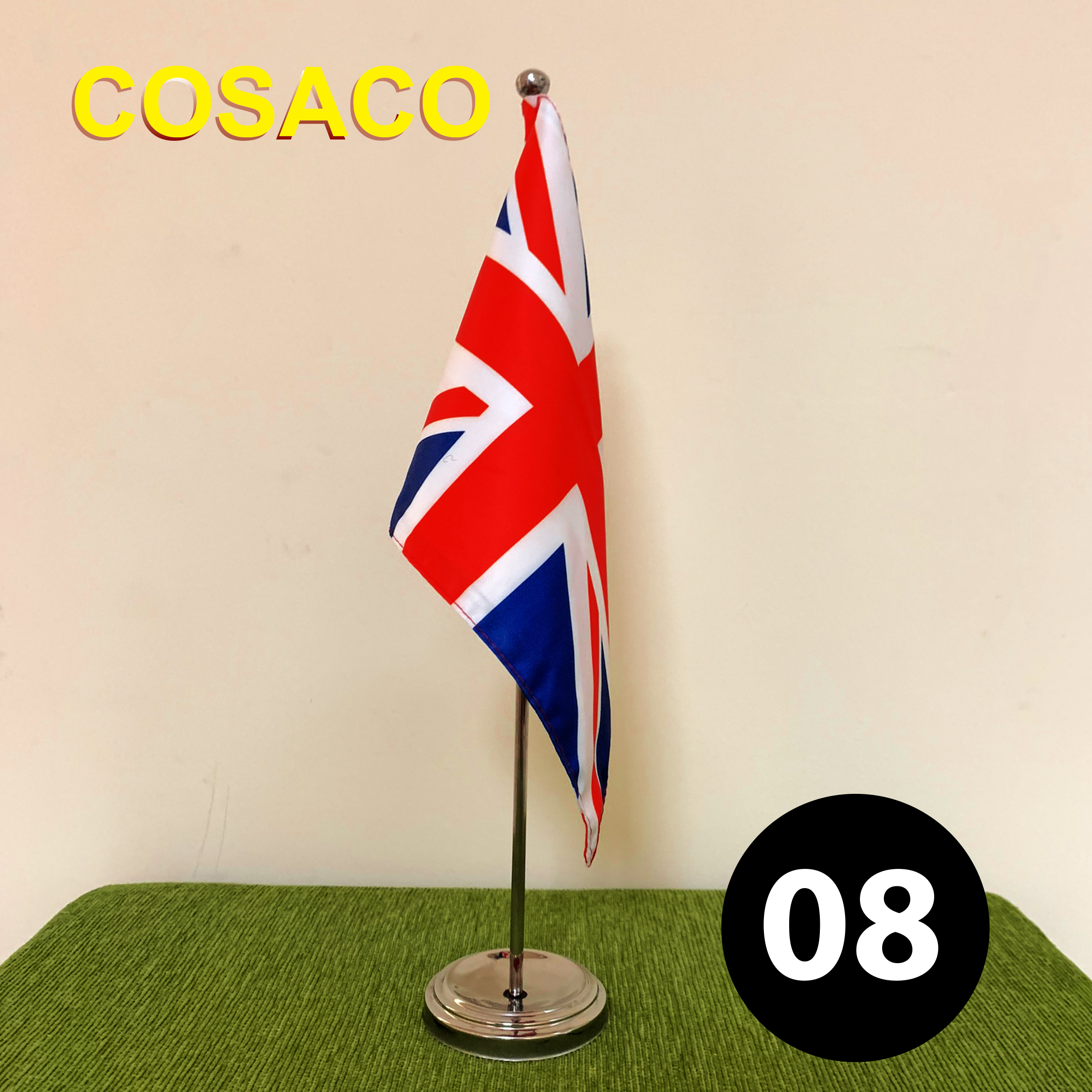 ⇒ Lá cờ để bàn được may chi tiết, sắc sảo, đường may chắc chắn đảm bảo độ bền và tính đồng bộ.